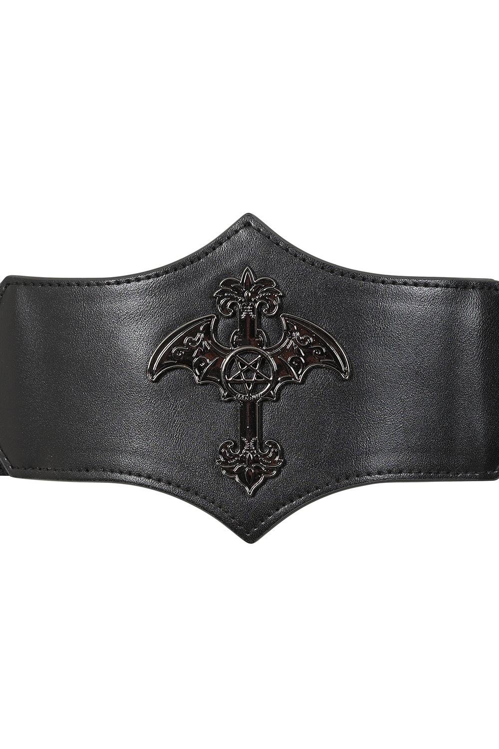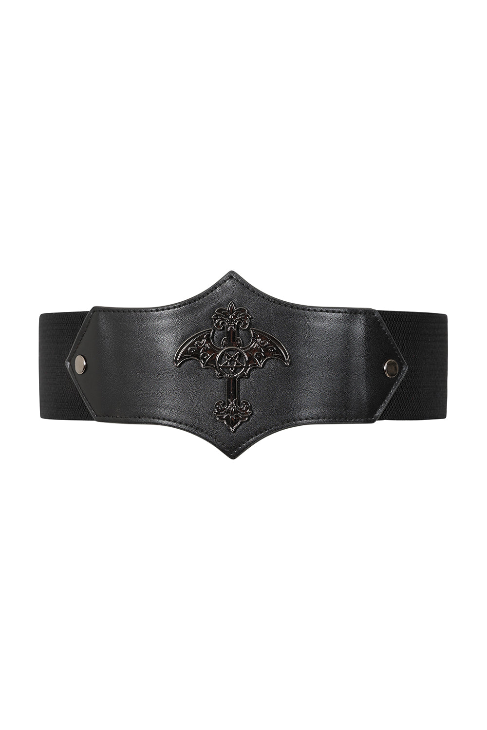 The Banned Wicked Waistband is the ultimate gothic accessory, featuring an elasticated design adorned with a bold cross ornament. Perfect for adding a dark, edgy touch to your look, this belt is a must-have for completing any statement outfit.