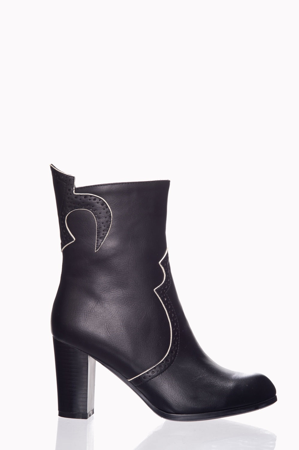 Tall Ankle Boot With Western Detail Upper: Waxed PU Material With PU Applications Warm Lining Insole: Vegan Leather Outsole: TPR Heel Height 8cm Normal Fit