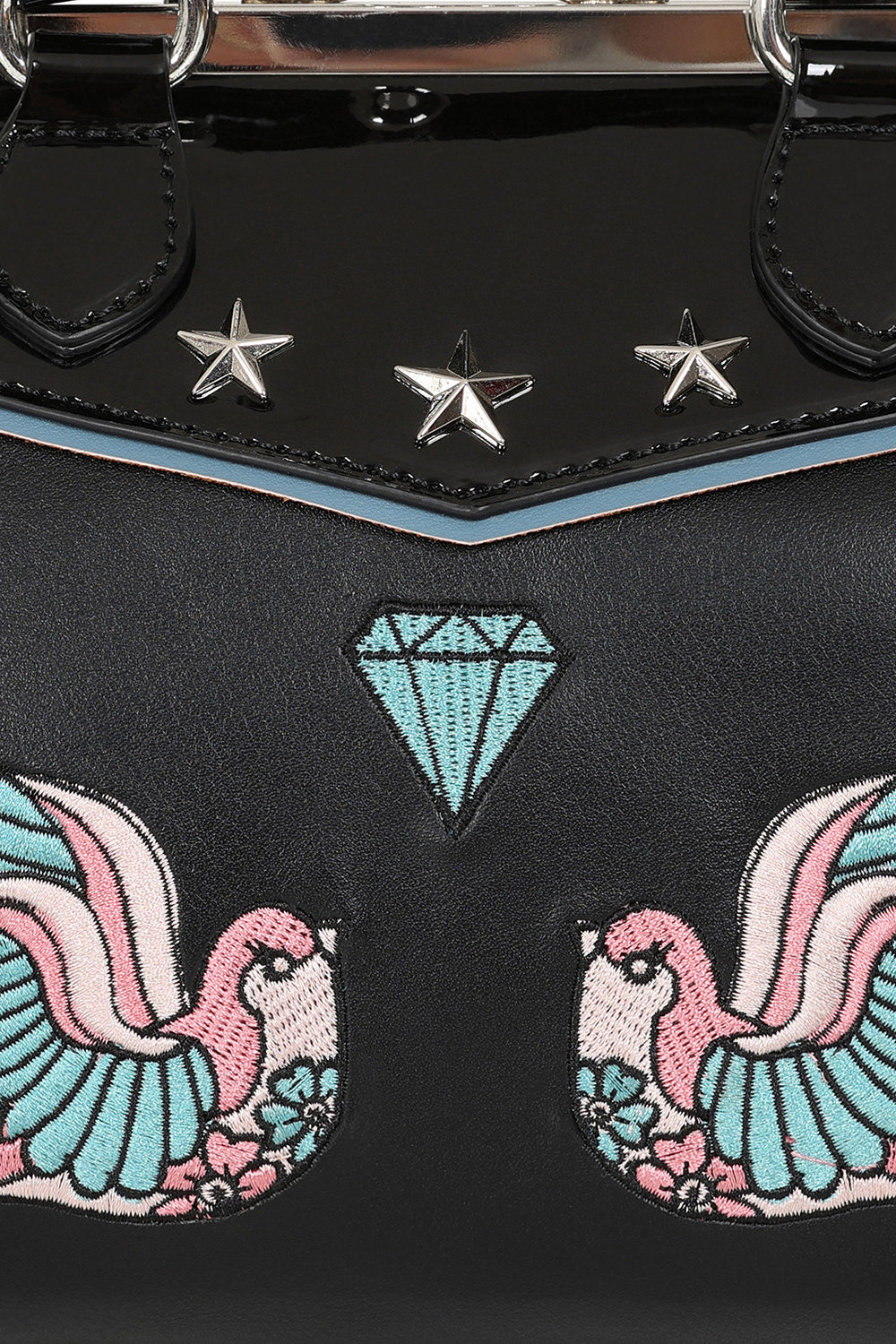 BANNED The Swallows Return Lacquer Handbag | Rockabilly Embroidered Style